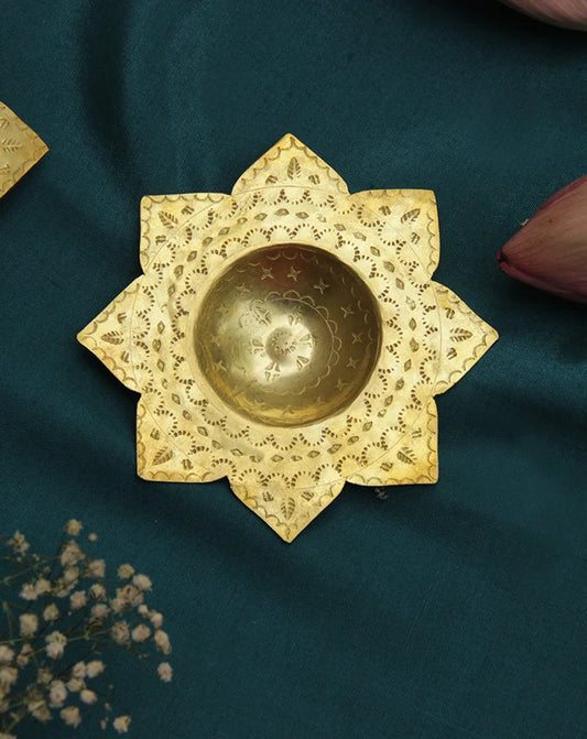 Phool Brass Diya and Tea Light Holder (Set of 2) | Hand Stamped