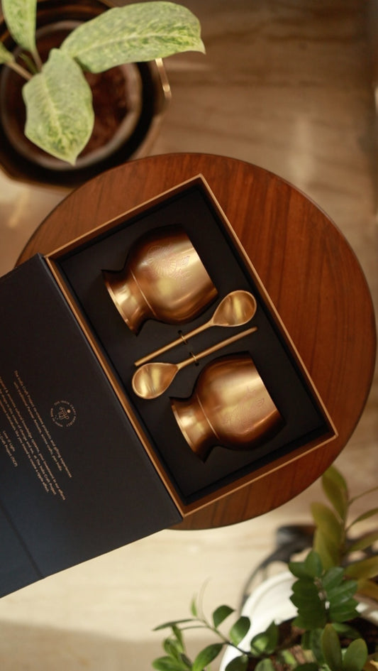 Gond Gift Box | Set of 2 Dessert Bowls | Handcrafted Brass Dessert Bowls