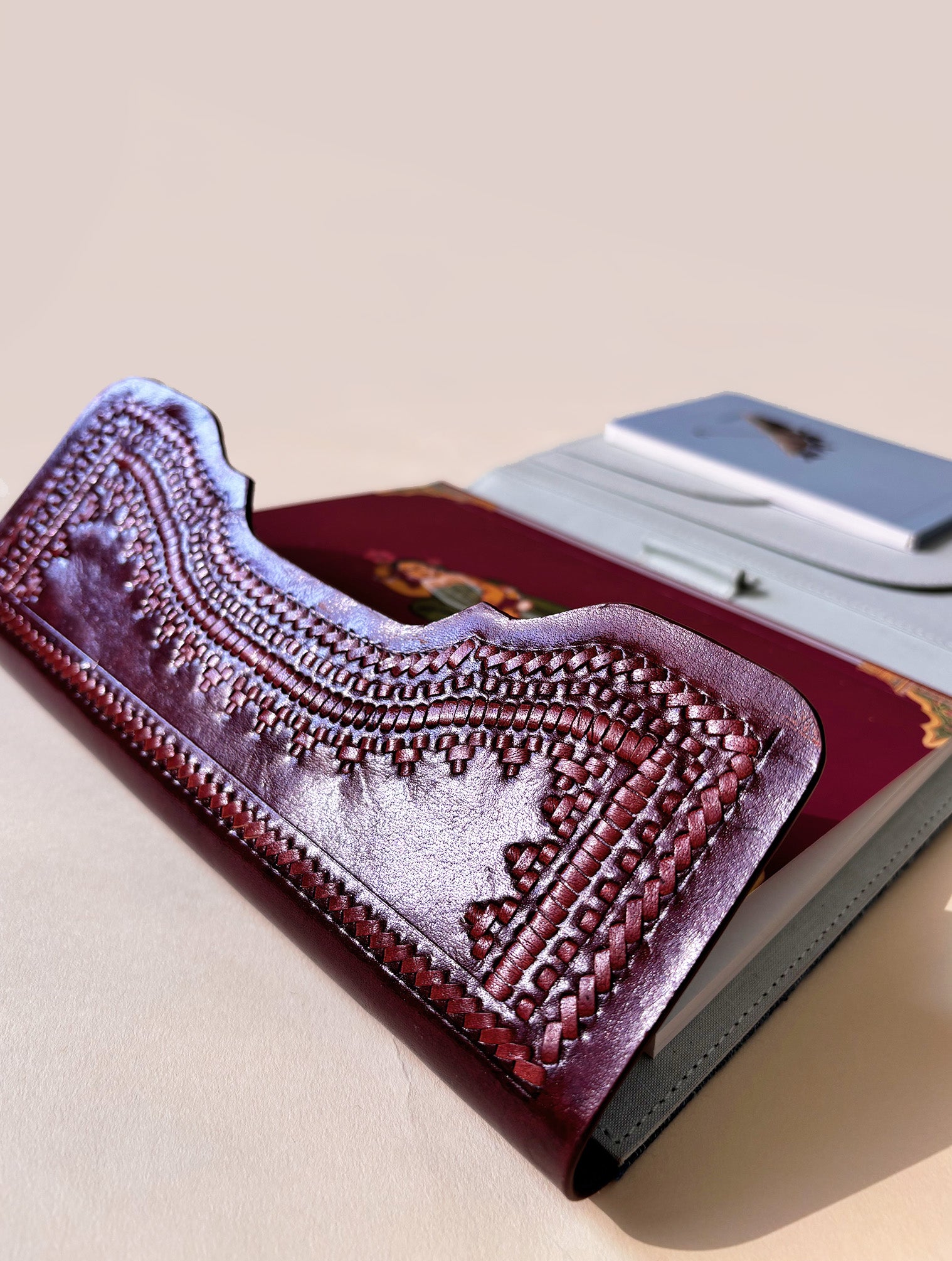 ✧ 1 Keepsake Folio with a Leather Crafted-flap and naturally dyed Kala cotton fabric - all handcrafted in Kutch