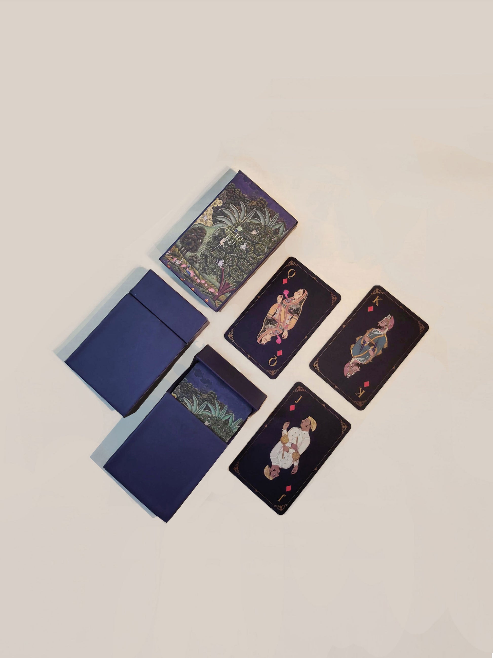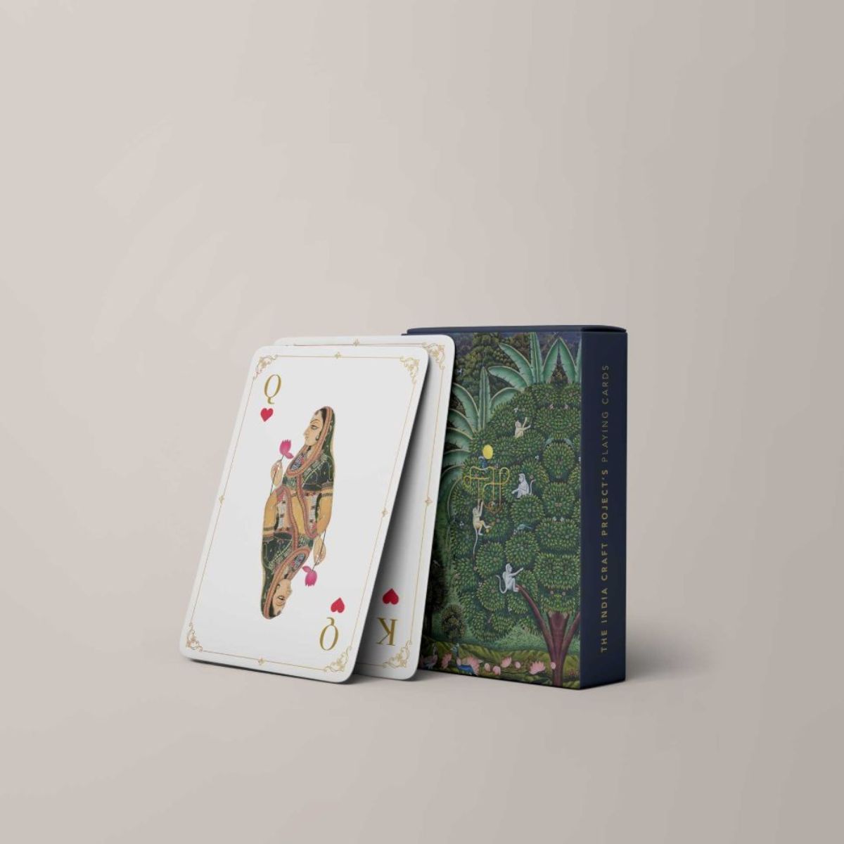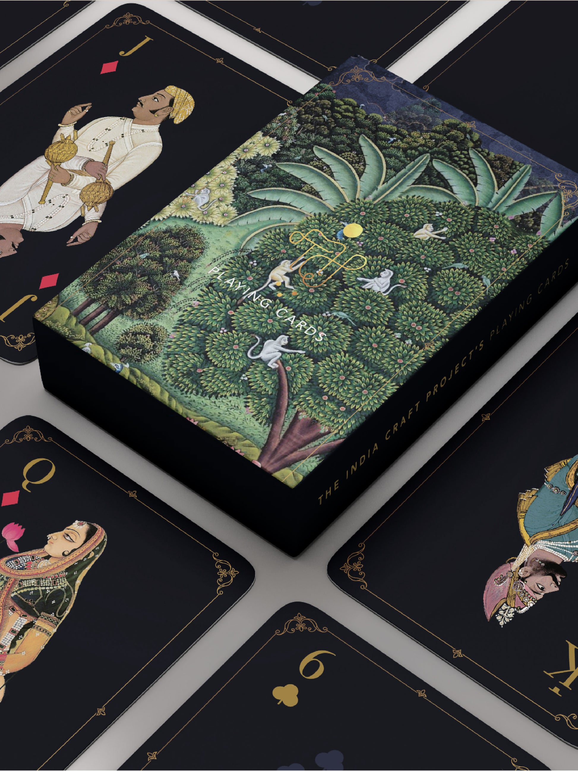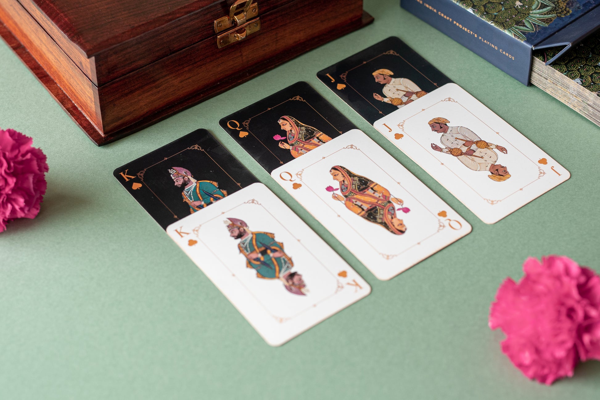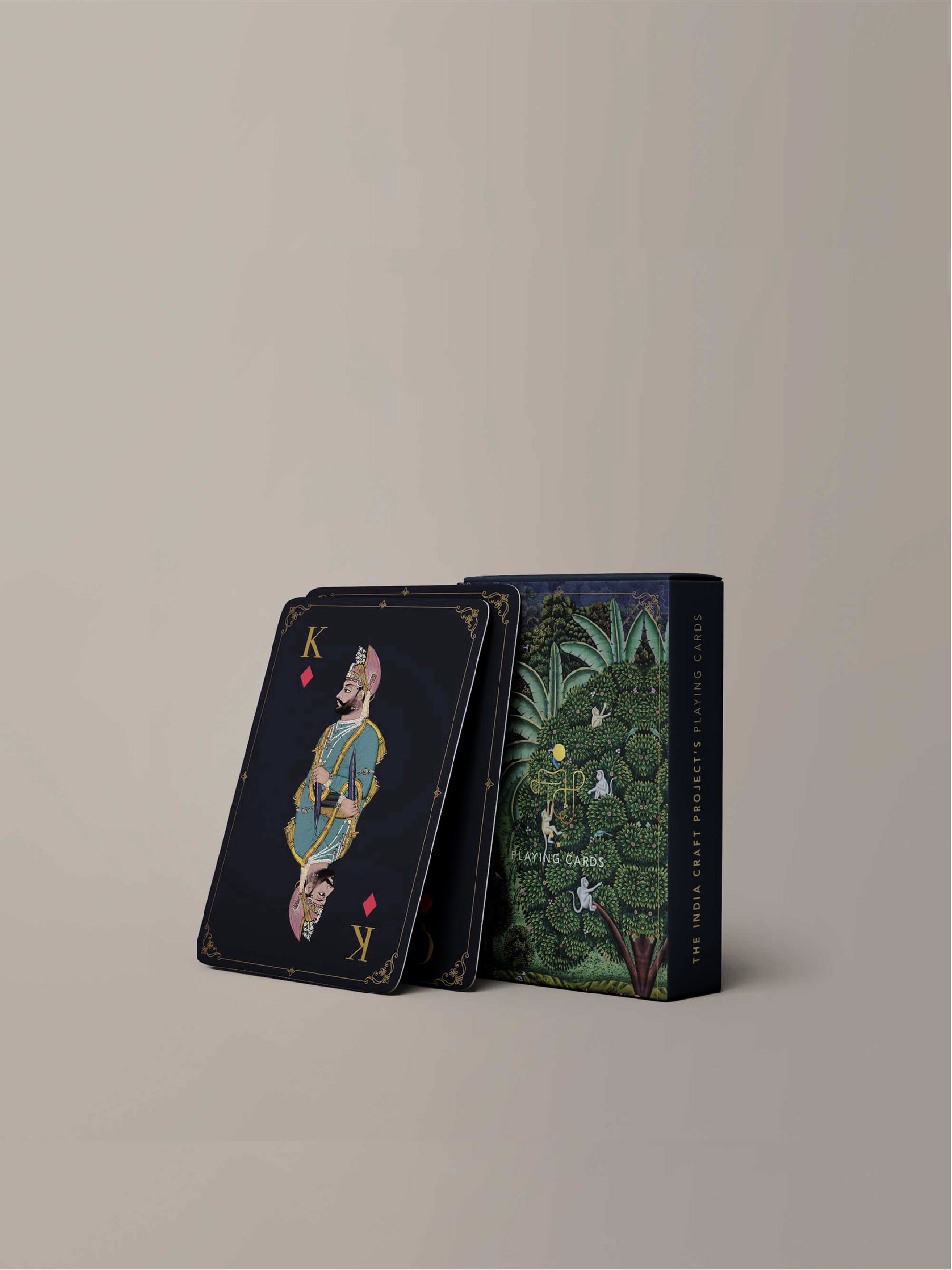*NEW & UPGRADED POKER QUALITY* Playing cards in a magnetic illustrated box featuring Rajasthani miniature art in print. The India Craft Project playing cards have been specially designed for your next indie cards' party and perfect for your card collection.