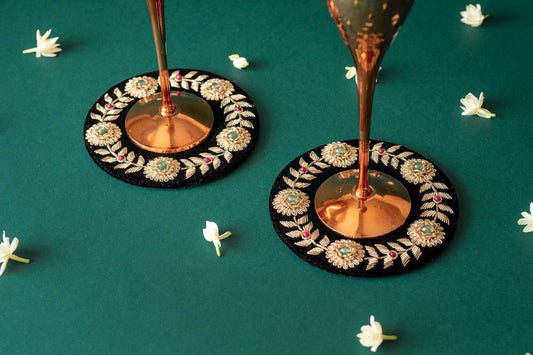 Kusum Zardozi Coasters - Set of 2 | Handcrafted Elegant Drinkware