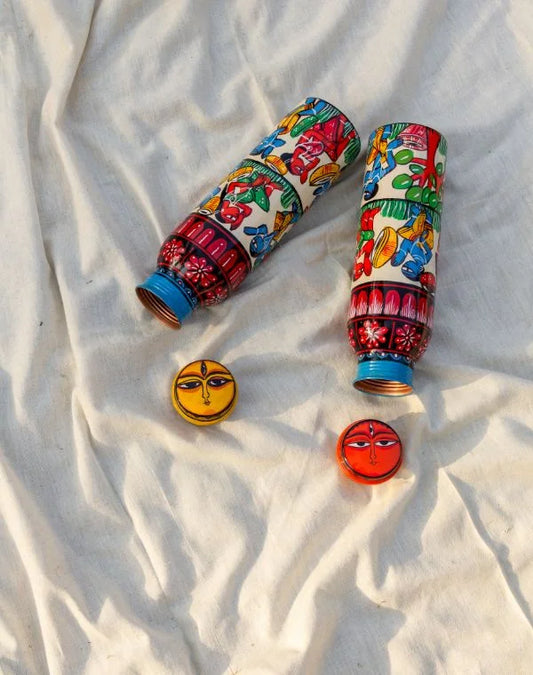 Nritya (Set of 2) Copper glasses | Bengal Pattachitra