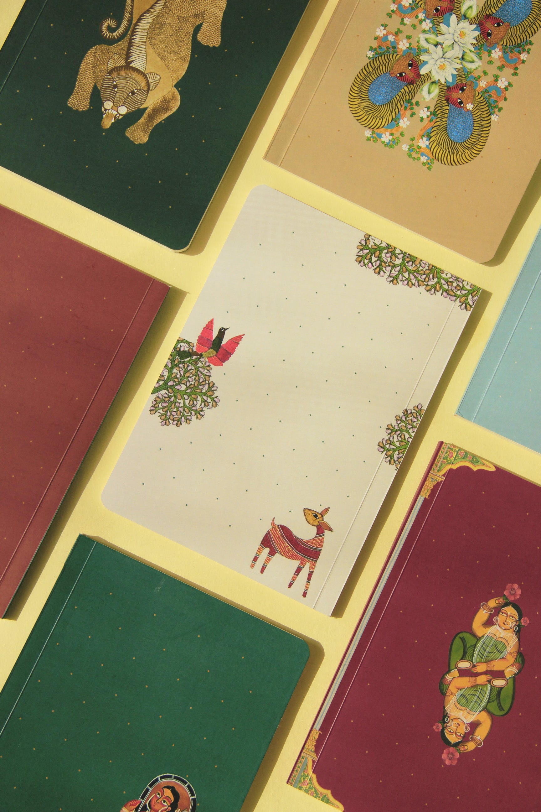 Capture your thoughts, sketches, and to-do lists in these handcrafted A5 diaries featuring vibrant folk art motifs from India. Each diary is staple-bound with 80 folded pages, designed for everyday writing, journaling, or gifting with blank pages. Made with love under The India Craft Project’s ARTH Stationery Collection, these pieces celebrate culture, storytelling, and sustainable craftsmanship.