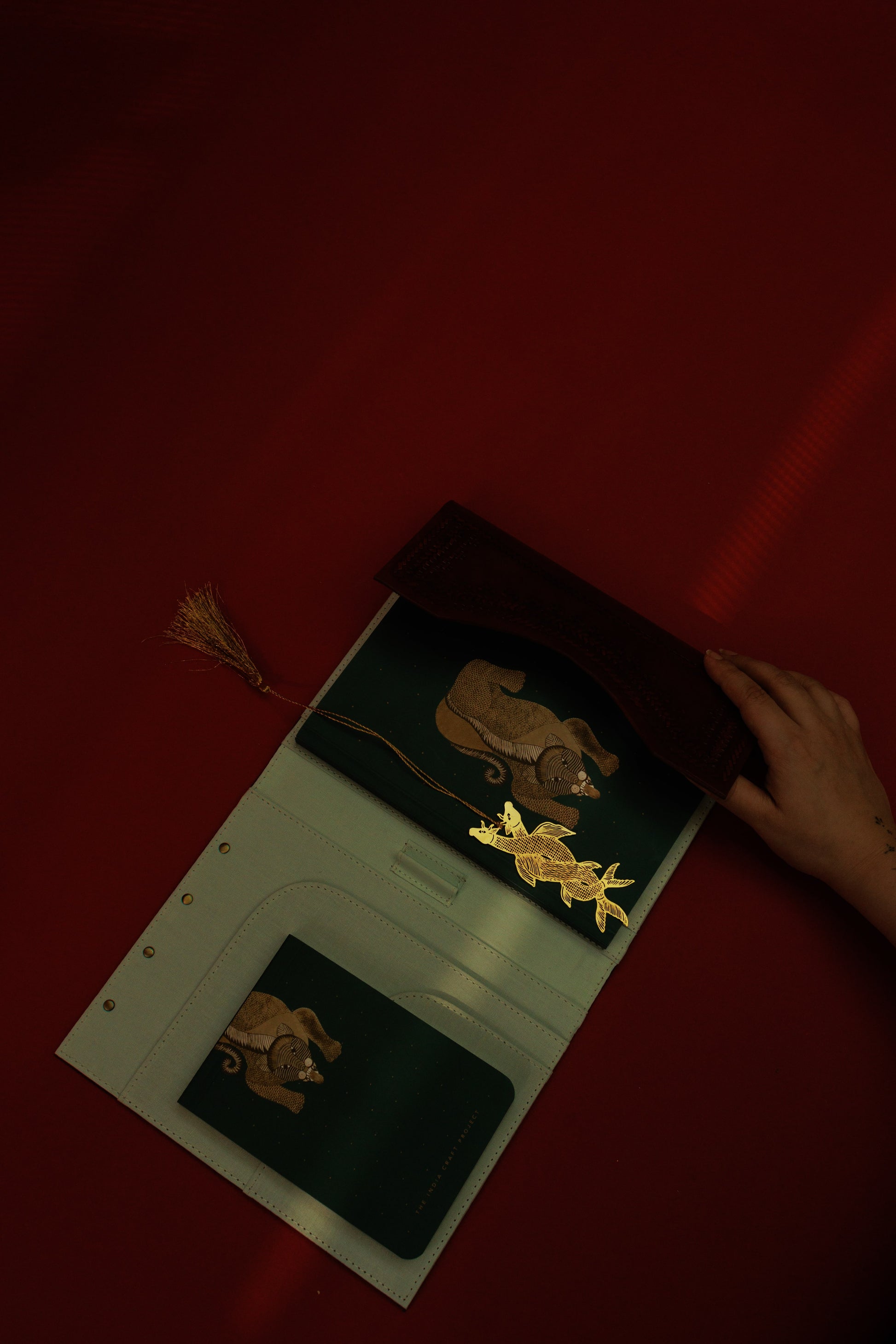 ✧ 1 Keepsake Folio with a Leather Crafted-flap and naturally dyed Kala cotton fabric - all handcrafted in Kutch