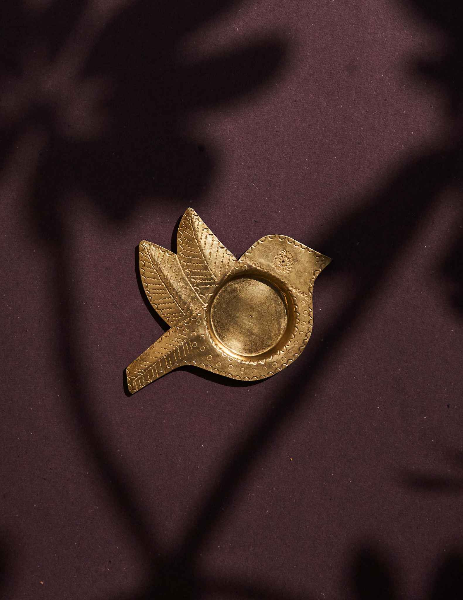 Recycled and hand-stamped brass tea light holders in a gift box to bring a sense of calm, happiness, prosperity, and abundance in every household. The brass exterior is carefully hand-stamped and hand cut by the Gadia Lohar tribe. The India Craft Project aims to create positive, celebratory experiences through such beautiful craft practices.